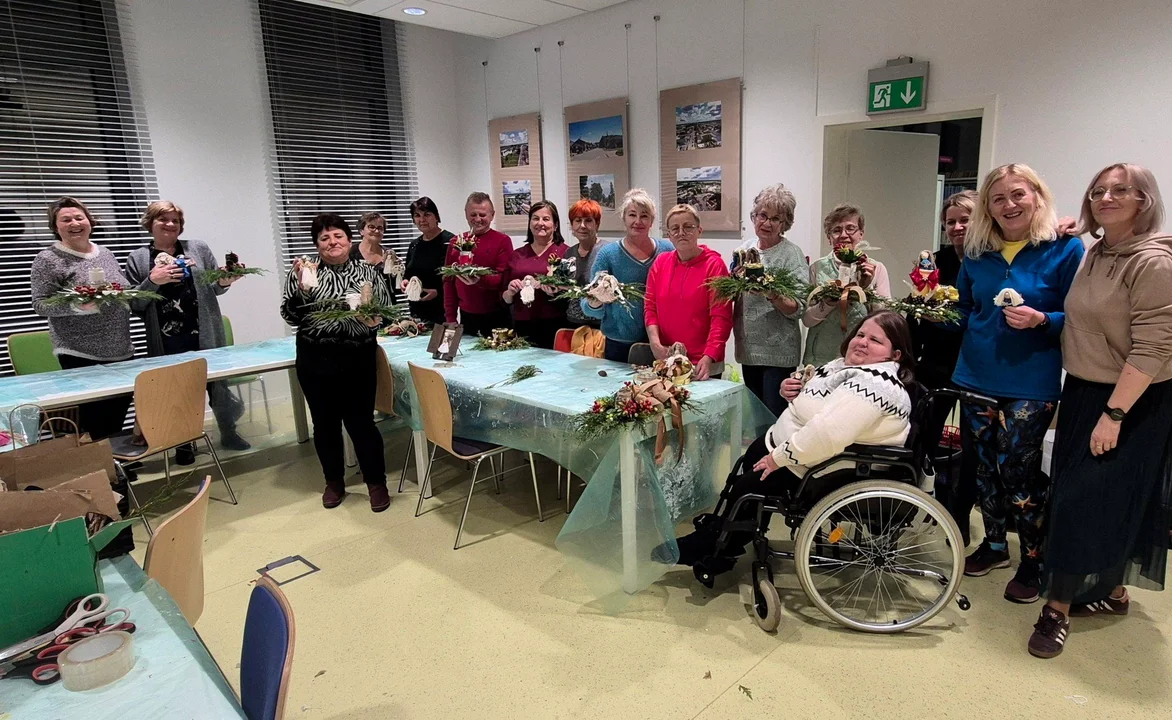 Słuchacze Uniwersytetu Ludowego w Adamowie tworzyli świąteczne ozdoby. Piękne stroiki!