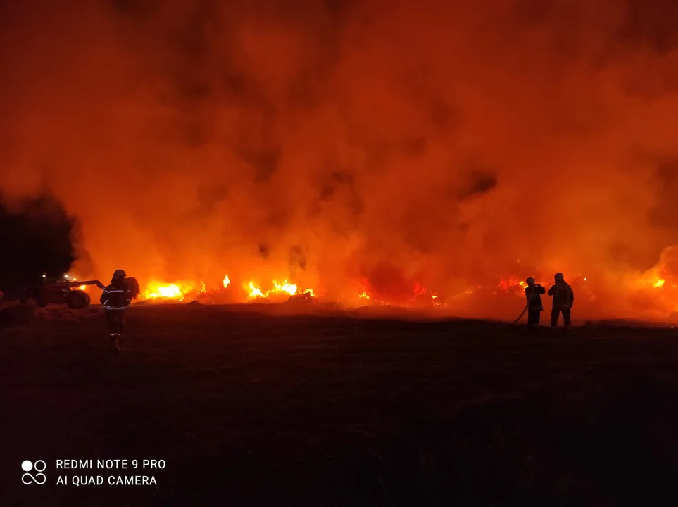 Spaliło się 200 bel słomy na polu (zdjęcia) Gasili je zawodowi strażacy i OSP z gminy Wola Mysłowska