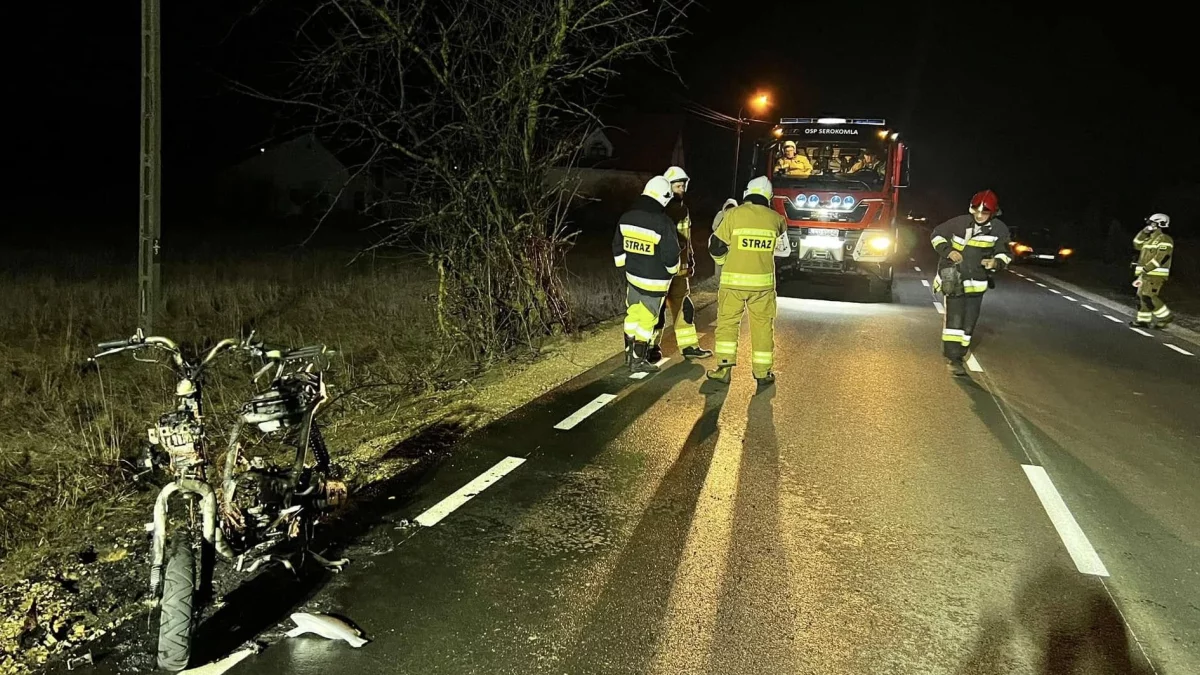 Po przybyciu strażaków okazało się, że pojazd płonie, a jego właściciel nie był obecny na miejscu. Działania ratowników polegały na zabezpieczeniu terenu oraz ugaszeniu skutera jednym prądem wody.