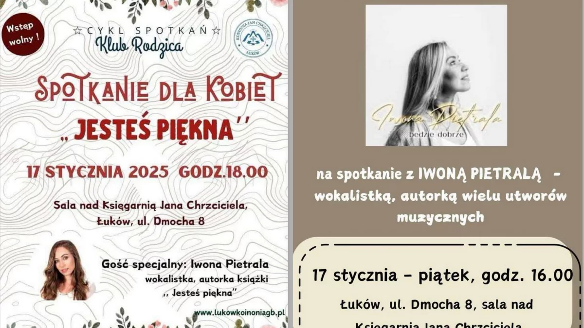 Pierwsze wydarzenie to spotkanie dla młodych z Iwoną Pietralą, wokalistką i autorką wielu utworów muzycznych. Spotkanie odbędzie się 17 stycznia (piątek) o godzinie 16:00 w Łukowie, przy ul. Dmocha 8, w sali nad Księgarnią Jana Chrzciciela.