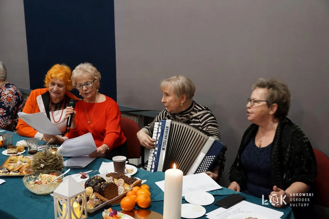 Był to czas wzajemnych życzeń składanych podczas dzielenia się opłatkiem, wspólnego kolędowania oraz duchowego przygotowywania się do Świąt Bożego Narodzenia. Życzenia słuchaczom złożyli przedstawiciele łukowskiego magistratu: burmistrz Piotr Płudowski, jego zastępca Mateusz Popławski i przewodniczący Rady Miasta Artur Czubaszek. Do śpiewanych kolęd na akordeonie zagrała Alicja Trzpiel. W świąteczny nastrój słuchaczy oraz zaproszonych gości wprowadzili artyści przygotowani przez instruktorów ŁOK: recytatorzy z Teatru Poezji ŁOK oraz Retro Teatru ŁOK pod przewodnictwem Sławomira Żyłki. Występ młodych instrumentalistów z sekcji artystycznej prowadzonej przez Antona Fartushnego zachwycił zebranych. Spotkanie było okazją zarówno do wspólnego kolędowania, jak i rozmów, wspomnień i smakowania potraw, przygotowanych przez słuchaczy. Organizatorzy dziękują serdecznie za pomoc w organizacji wydarzenia młodzieży z Zespołu Szkół nr 2 im. Aleksandra Świętochowskiego w Łukowie.