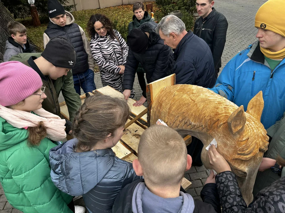 Podczas spotkania można było zobaczyć pokaz rzeźbienia oraz wziąć udział w krótkich warsztatach. Duże zainteresowanie wzbudziła rzeźba głowy konia wykonana przez Krzysztofa Osaka, którą młodzież oczyściła i przygotowała do polichromowania. Uczestnicy mieli także okazję spróbować swoich sił w rzeźbieniu, poznając podstawowe narzędzia i techniki pracy w drewnie.