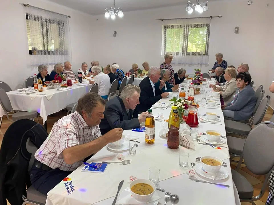 Wydarzenie zgromadziło liczne grono sąsiadów, którzy – mimo codziennych obowiązków – z radością odpowiedzieli na zaproszenie organizatorów. Spotkanie przebiegło w serdecznej, rodzinnej atmosferze. Gości powitali organizatorzy, dziękując za liczne przybycie. Następnie przyszedł czas na poczęstunek – seniorzy zostali ugoszczeni pysznym obiadem.