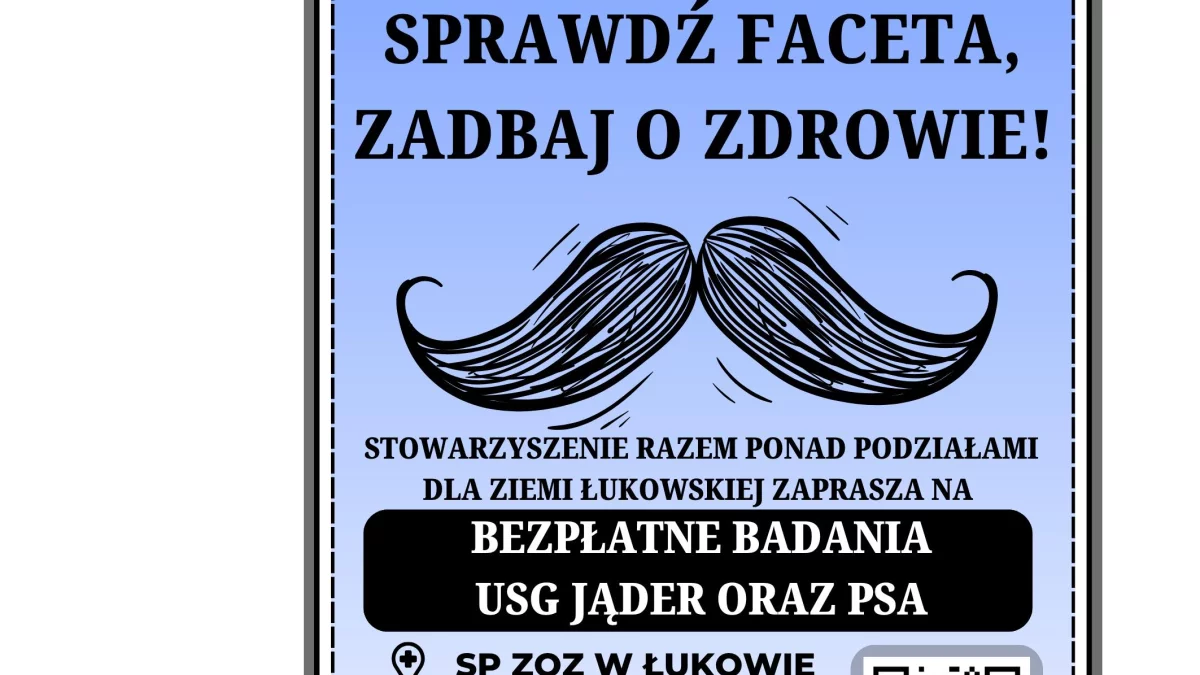 - Pomysł zrodził się między nami – trójką znajomych facetów. Zaczęliśmy rozmawiać o zdrowiu i szybko okazało się, że takich rozmów po prostu nie ma.Badania pokazują, że mężczyźni rozmawiają o zdrowiu nawet trzy razy rzadziej niż kobiety, które są bardziej świadome swojego ciała. Dlatego postanowiliśmy: zróbmy coś tu, u nas, w Łukowie. Rak jąder to problem, który dotyka przede wszystkim młodych mężczyzn – między 20. a 40. rokiem życia. Zapraszamy wszystkich panów, niezależnie od wieku, na bezpłatne badania jąder i PSA, które odbędą się w naszym powiatowym SP ZOZ-ie. Zdobyliśmy środki z grantu Moc Małych Społeczności, dzięki czemu finansujemy pierwsze 40 badań, ale wiemy, że uda się zrealizować jeszcze więcej. Bo tu nie chodzi tylko o badania – chodzi o przełamanie tabu i rozpoczęcie rozmowy o zdrowiu mężczyzn – przekonują.