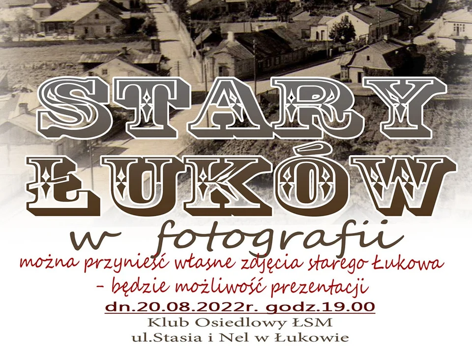 Na miejscu zostaną pokazane stare zdjęcia Łukowa, jego dawnych budynków i mieszkańców. Osoby, które we własnych zbiorach posiadają podobne fotografie, będą mogły zabrać je ze sobą i zaprezentować innym zgromadzonym. Wstęp wolny.