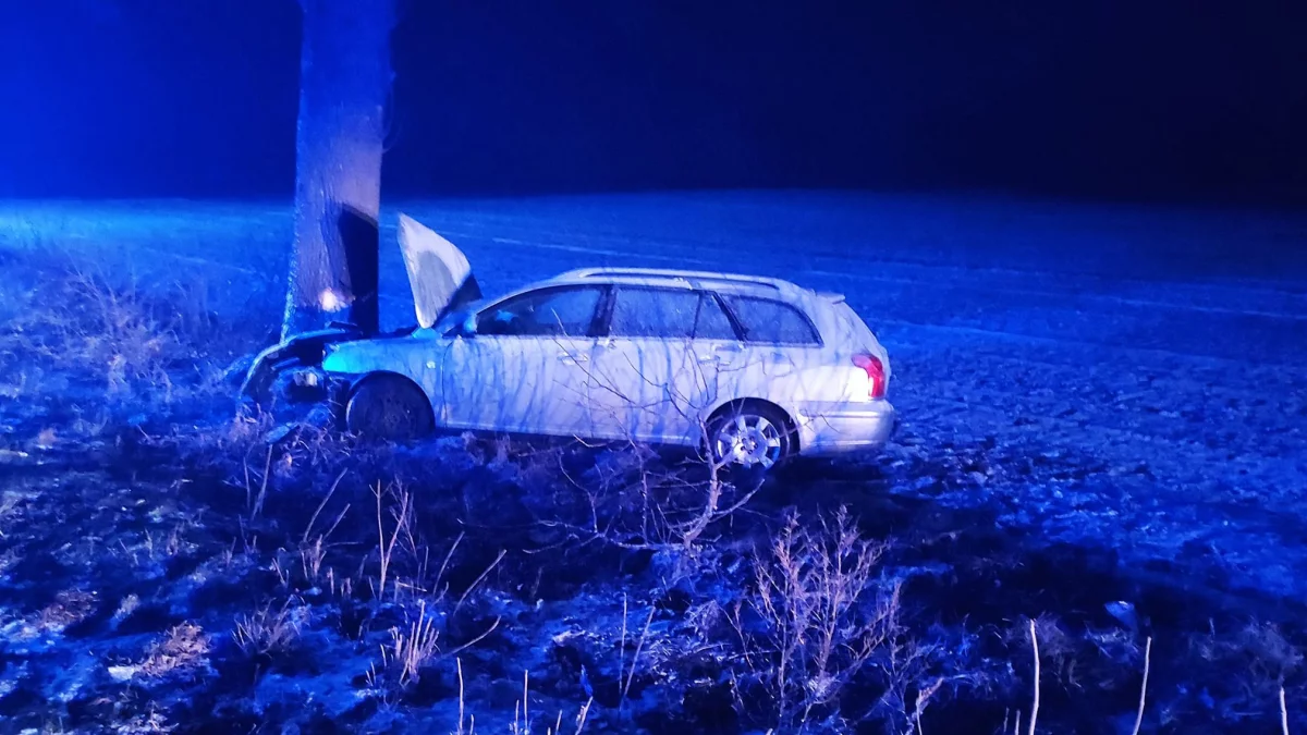 Jak podaje straż pożarna, po przybyciu na miejsce stwierdzono, że kierowca samochodu osobowego marki Toyota stracił panowanie nad pojazdem i uderzył w przydrożne drzewo.