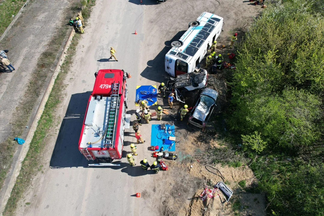 Strażackie ćwiczenia „MASÓWKA 2023” w Krzywdzie (ZDJĘCIA). Akcja przy przewróconym autobusie