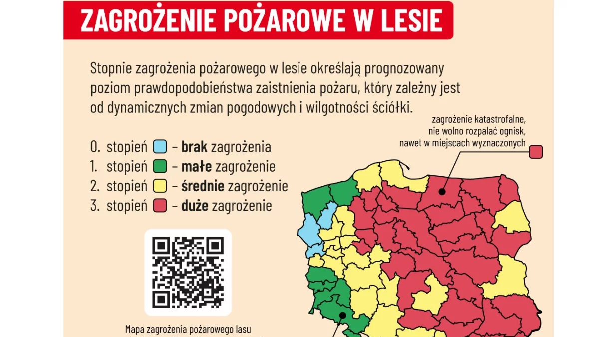 Panuje bardzo niska wilgotność ściółki leśnej, trwa susza po zimie, często wieje porywisty wiatr, który szybko rozprzestrzenia ogień. Większość Polski ma co najmniej wysoki poziom zagrożenia pożarowego, a szczególnie niebezpiecznie jest na wschodzie i w centrum kraju.