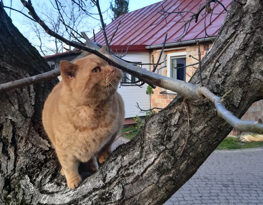 Kot utknął na drzewie na wysokości około 10 metrów. Siedział tam już podobno 3 dni i nie potrafił sam zejść. Zwierzę było osłabione. Na miejsce pojechali zawodowi strażacy z Łukowa, przy pomocy przenośnej drabiny przystawnej zdjęli kota i przekazali go właścicielowi.