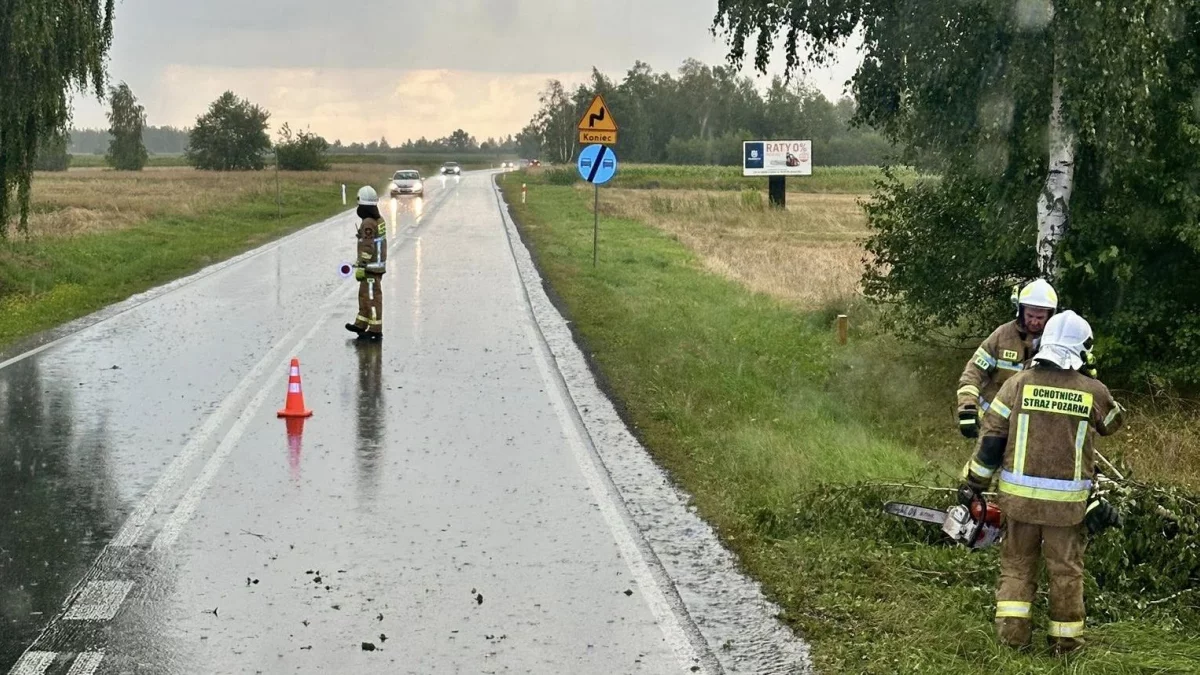 Na skutek silnego wiatru drzewo przewróciło się, utrudniając przejazd. Działania strażaków polegały na zabezpieczeniu miejsca zdarzenia oraz sprawnym usunięciu przeszkody z drogi, co pozwoliło szybko przywrócić płynność ruchu.