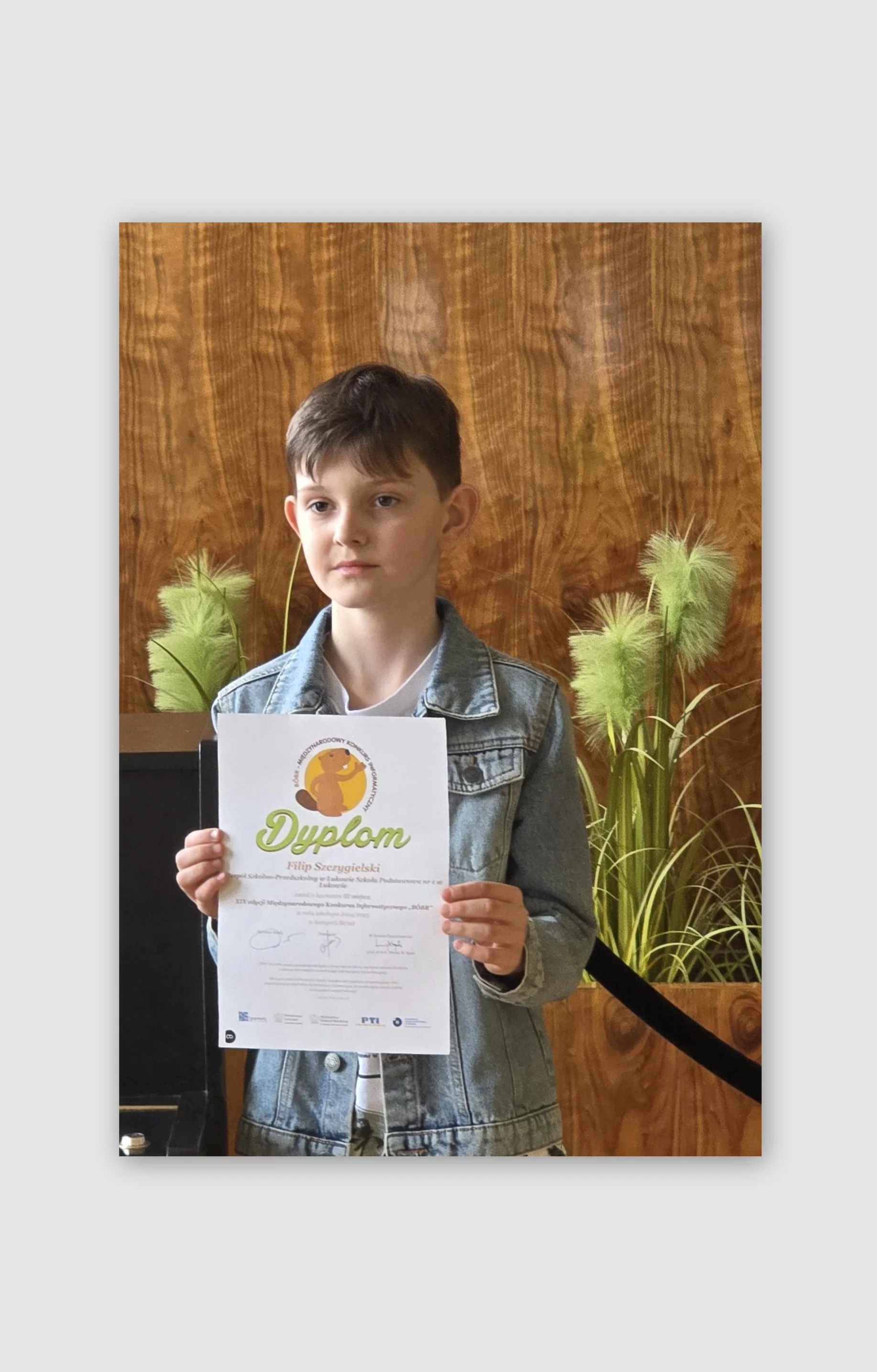 Informacje łukowskieŁUKÓW Filip Szczygielski - uczeń kl. III Zespołu Szkolno - Przedszkolnego w Łukowie odniósł znaczący sukces, zdobywając III miejsce, w prestiżowym Międzynarodowym Konkursie Informatycznym Bóbr, w roku szkolnym 2024/2025
