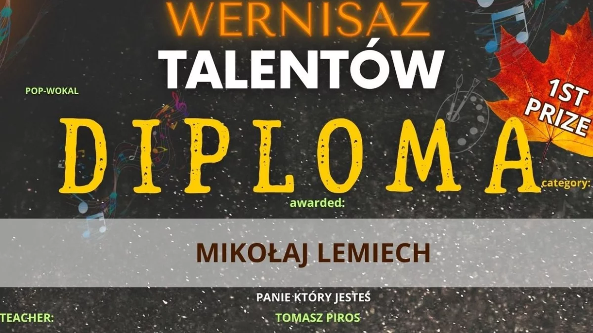 Jak poinformował Tomasz Piros - Mikołaj Lemiech osiągnął w swojej kategorii pierwsze miejsce, co jest dużym sukcesem i docenieniem jego pracy oraz talentu.