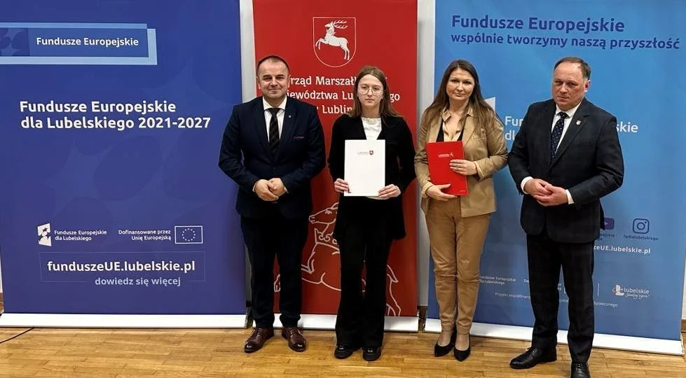 Uroczysta gala stypendystów programu Fundusze Europejskie dla Lubelskiego 2021-2027 odbyła się 14 marca w budynku Medycznego Studium Zawodowego w Białej Podlaskiej. Stypendium Marszałka Województwa Lubelskiego otrzymała Zuzanna Rybicka. Zuzia znalazła się w gronie najlepszych uczniów w województwie, biorących udział w programie stypendialnym „Lubelskie wspiera uzdolnionych 2023 - 2024.”Uczennica realizuje program z języka angielskiego pod kierunkiem Ewy Czub.