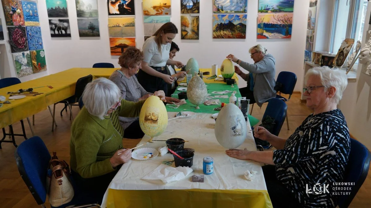 Praca nad bazą rozpoczęła się od starannego malowania jaj farbami akrylowymi. Dobór kolorystyki pozwolił na uzyskanie idealnego tła dla głównych motywów. Na warsztatowych stołach królował papier ryżowy z wzorami baranków, zajęcy czy dostojnych gęsi. To jednak nie wszystko. Wyjątkowy styl jajom nadały detale z masy samoutwardzalnej, wstążki i koronki - informuje ŁOK.