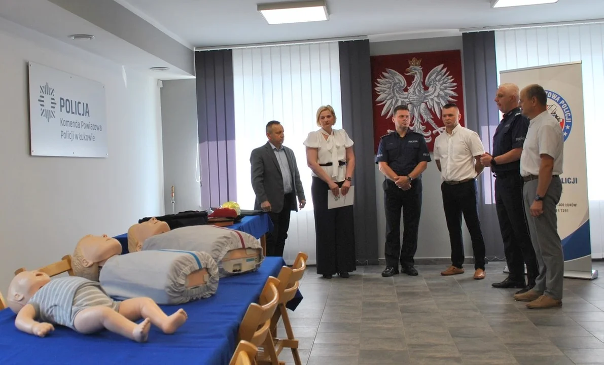 - Niejednokrotnie policjanci mają do czynienia z sytuacjami, gdzie zagrożone jest zdrowie, a nawet życie ludzkie. Profesjonalizm mundurowych powinien cechować się między innymi właściwą reakcją i umiejętnością udzielenia pierwszej pomocy. Wielu policjantów posiada już wiedzę i kwalifikację do udzielania świadczeń zdrowotnych w sytuacji nagłego stanu zagrożenia życia lub zdrowia, ale utrzymanie wysokiego poziomu wymaga od nich systematycznego podnoszenia umiejętności. Dzięki przekazanemu przez Panią Prezes Aleksandrę Bonusiewicz i członka Zarządu Zakładów Mięsnych ŁUKÓW S.A. Pana Artura Osiaka medycznemu sprzętowi szkoleniowemu łukowscy mundurowi będą mogli podnosić swe kwalifikacje i sprawdzać umiejętności na fantomach do resuscytacji krążeniowo-oddechowej, zapoznają się z zasadami obsługi defibrylatora AED. Mundurowi będą mogli też wykorzystać szkoleniową kamizelkę do nauki „rękoczynu Heimlicha”, która pozwoli im przyswoić technikę pomocy przedlekarskiej stosowaną przy zadławieniach – informuje Marcin Józwik, oficer prasowy Komendy Policji w Łukowie.