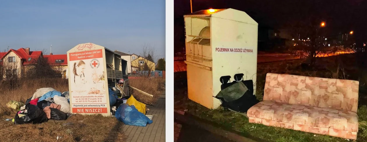 Chyba każdy wrzucił kiedyś niepotrzebne ubrania i buty do kontenerów PCK, które stoją w różnych miejscach Łukowa i powiatu. Jednak mamy coraz więcej sygnałów, że wokół kontenerów panuje bałagan, są one zapchane albo uszkodzone.