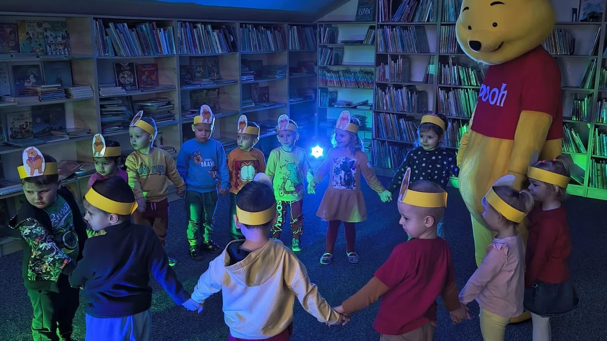 Zamin jednak doszło do spotkania z ulubioną postacią wszystkich dzieci zabawa rozpoczęła się od przypomnienia postaci z bajki o Kubusiu Puchatku, który to był głównym sprawcą całego zamieszania w bibliotece.