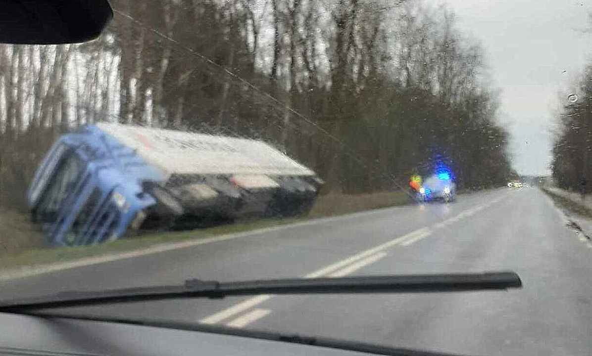 W związku z utrudnieniami i koniecznością wyciągnięcia zespołu pojazdów z przydrożnego rowu, droga była zablokowana i zorganizowano objazdy.