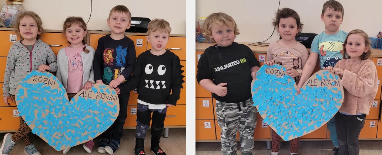 W przedszkolu w akcie solidarności z osobami cierpiącymi na autyzm dzieci z grupy świetlicy popołudniowej z p. Izą Izdebską "zaświeciły" na niebiesko, bo symbolami tego święta są żarówka i związane z nią motto: "Cała Polska świeci na niebiesko”. Podczas zajęć plastycznych używano tylko niebieskich farb, kredek, papierów. Przedszkolaki wykonały niebieskie dłonie i obejrzały film "Maria i ja", który przedstawił codzienność Marii, dziewczynki dotkniętej autyzmem.