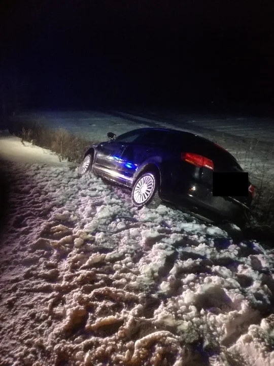 Kierująca Audi straciła panowanie nad pojazdem na oblodzonej drodze, co skutkowało wpadnięciem samochodu do rowu. Strażacy z OSP Serokomla i JRG Łuków szybko przybyli na miejsce.