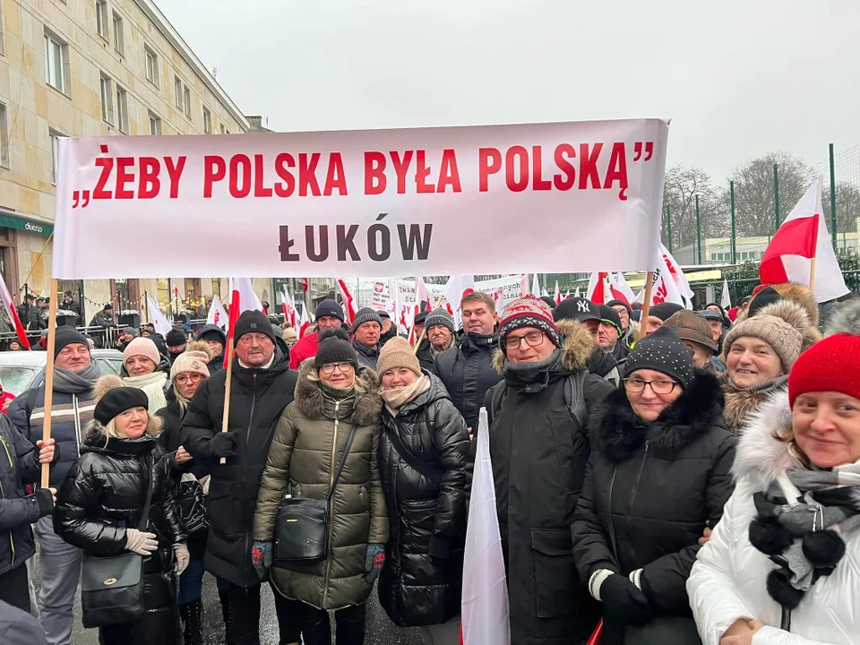 Wśród manifestujących są również mieszkańcy Łukowa. Na zdjęciach widzimy transparent "Żeby Polska była Polską - Łuków", który niosą członkowie PiS, którzy przyjechali do Warszawy.