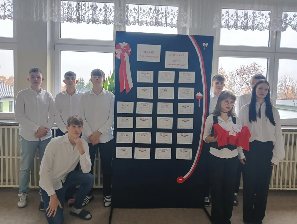- „Warte zapamiętania” to akcja, w której Zespół Szkół nr 1 uczestniczył po raz kolejny z okazji 106. rocznicy odzyskania niepodległości przez Polskę. Została ona przeprowadzona wśród uczniów klas technikum - informuje szkoła. - Celem akcji było zainicjowanie rozmów na temat słynnych Polaków - ojców naszej niepodległości, których myśli i sentencje skłaniają nas do refleksji i przemyśleń na temat współczesności, naszego rozwoju, wolności, patriotyzmu i państwa. Zadaniem młodzieży było wybrać sobie postać historyczną i jej złote myśli w celu zapisania ich na karcie zaprojektowanej na tę okoliczność. Patronem ogólnopolskiej akcji są Superbelfrzy RP.