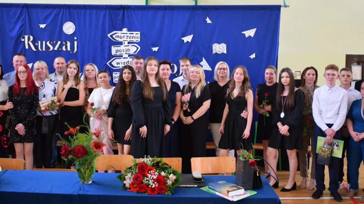 Nauczyciele pogratulowali swoim wychowankom słowami: „ Drodzy Absolwenci 2024/25! Uzyskaliście pierwsze miejsce w całym powiecie łukowskim (sic!) ze wszystkich przedmiotów egzaminacyjnych tj. języka polskiego, matematyki i języka angielskiego! Jesteście naszą dumą i chlubą. Całe nasze grono pedagogiczne składa najszczersze gratulacje i życzy dalszych sukcesów.”