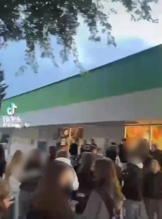Na filmikach widać duże grupy młodzieży przed popularnym sklepem. Jest głośno, padają wyzwiska, są przepychanki. Filmowana jest drobna dziewczynka, która ma zdezorientowaną minę, raz się śmieje, po chwili się kuli, odbiega.