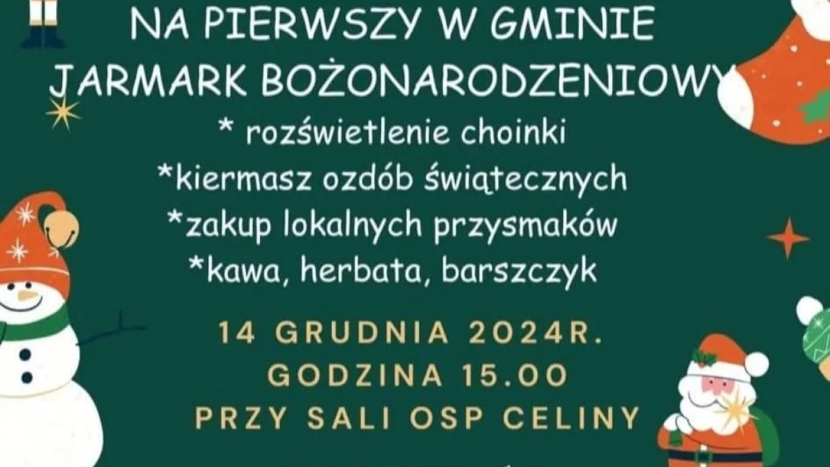 W programie: rozświetlenie choinki, kiermasz ozdób świątecznych, zakup lokalnych przysmaków, kawa, herbata, barszczyk.
