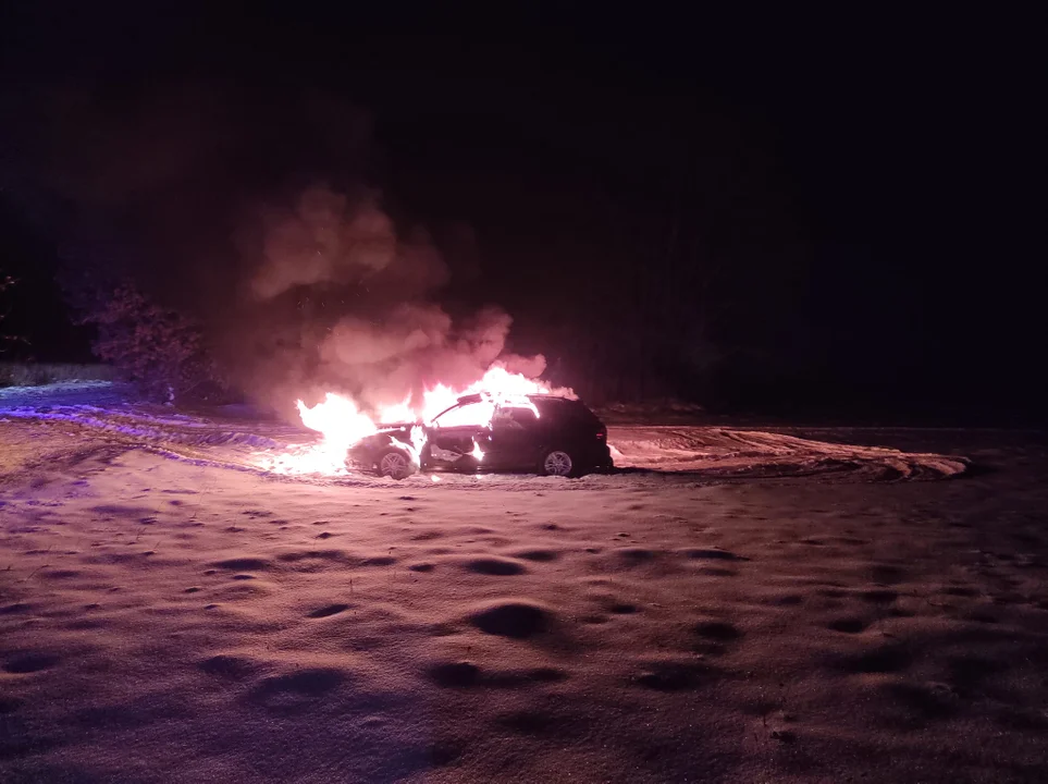 Pożar został opanowany, niestety samochód został poważnie zniszczony.