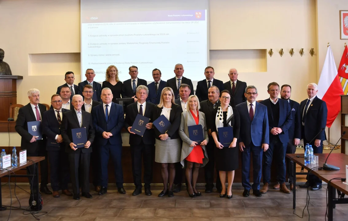 Podczas ostatniej sesji nie zabrakło również momentów wdzięczności i podziękowań. Wiceprzewodniczący Rady Powiatu, Andrzej Wisiński, Starosta Łukowski, Dariusz Szustek, Wicestarosta, Janusz Kozioł oraz Członek Zarządu Powiatu, Władysław Karaś, złożyli serdeczne podziękowania za wieloletnią współpracę.