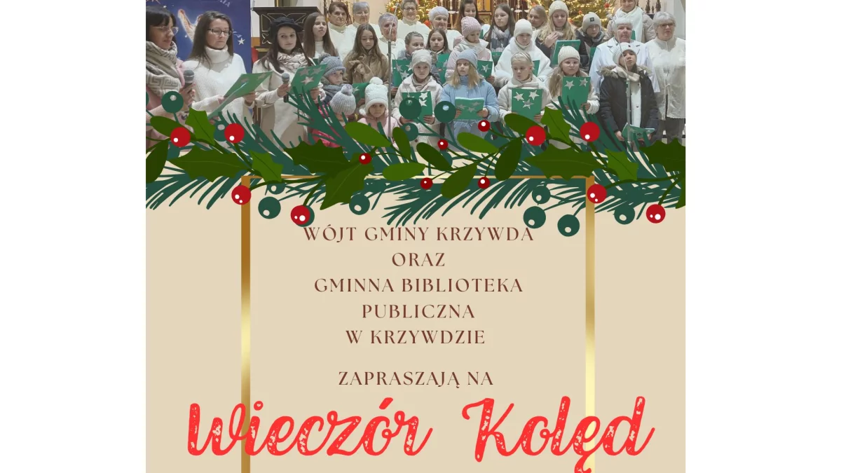 W piątek, 23 stycznia 2026 roku, o godzinie 17:00 w Centrum Kultury w Krzywdzie (dawny budynek dworca PKP) odbędzie się tradycyjny Wieczór Kolęd. Organizatorami wydarzenia są Wójt Gminy Krzywda oraz Gminna Biblioteka Publiczna.