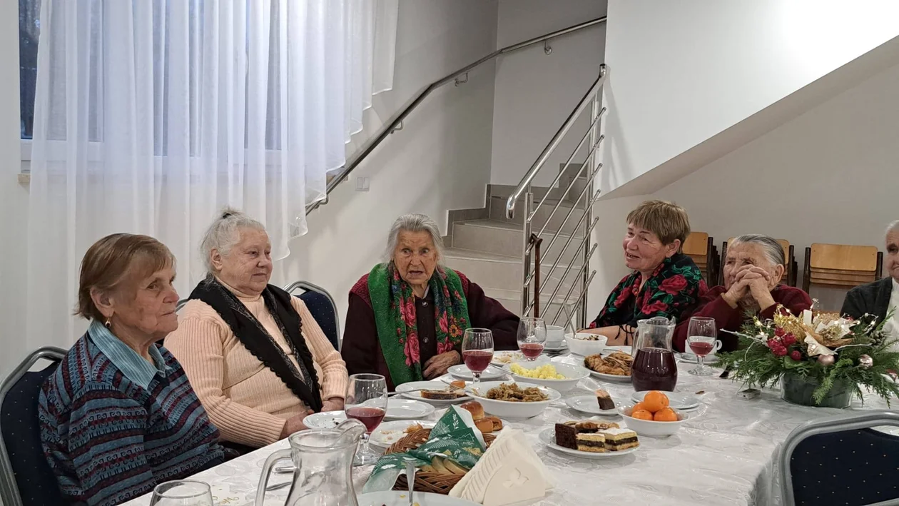 Spotkanie zgromadziło przy suto zastawionych stołach mieszkańców oraz zaproszonych gości. Wśród nich byli zastępca wójta Gminy Serokomla Aneta Mazur, radni Rady Gminy Piotr Kopacz i Paweł Cybulski, ksiądz proboszcz Andrzej Głasek oraz organistka Elżbieta Miłosz. W wydarzeniu uczestniczyły także osoby samotne, dla których wspólne spotkanie wigilijne było okazją do spędzenia czasu w radosnej, serdecznej atmosferze.
