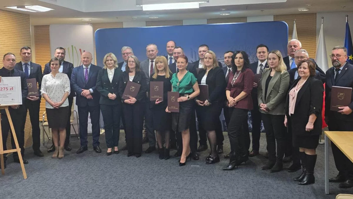 Wójt gminy Wojciech Czerniec wraz ze Skarbnikiem Małgorzatą Kłosińską podpisali dziś umowę z marszałkiem województwa Lubelskiego Jarosławem Stawiarskim oraz wicemarszałkiem Markiem Wojciechowskim na realizację inwestycji pod nazwą „Przebudowa stacji uzdatniania wody Podosie oraz rozbudowa kanalizacji w Krzywdzie”. Na realizację projektu przyznano dofinansowanie w wysokości blisko 4 mln złotych.