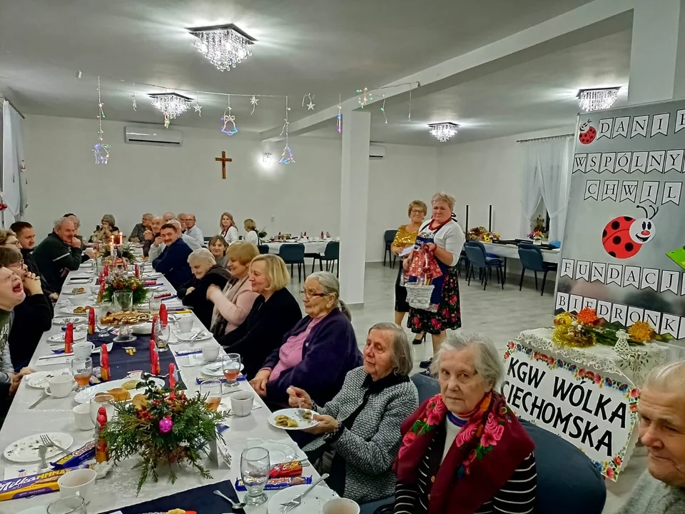 Razem z seniorami, księdzem wikariuszem Dariuszem Wójcikiem oraz panią wójt Kingą Szerszeń zasiedliśmy przy wigilijnym stole, zaczynając od modlitwy, dzielenia się opłatkiem i wspólnego śpiewania kolęd. Tym razem dla naszych seniorów przygotowaliśmy zabawę z losami, co wywołało mnóstwo radości i śmiechu – mówi Agnieszka Piórczyńska, szefowa KGW w Wólce Ciechomskiej.