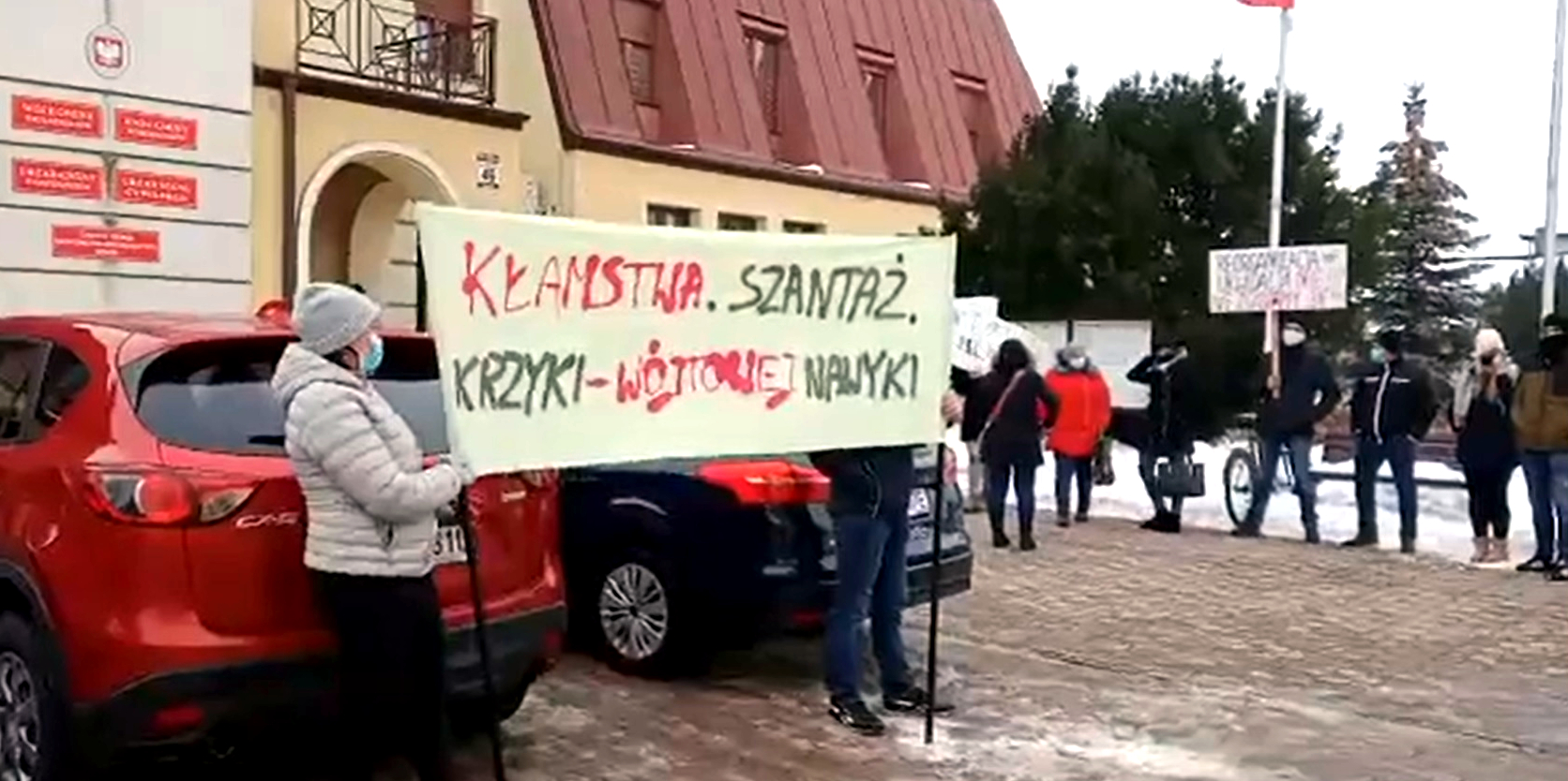 Około 40 osób, rodziców i mieszkańców Siedlisk oraz Hermanowa protestowało 17 lutego przed Urzędem Gminny w Wojcieszkowie. Ludzie nie zgadzali się z planami wójt Agnieszki Cieślak odnośnie planów reorganizacji małych wiejskich szkół. Na transparentach widniały różne hasła: "Kłamstwa, szantaż, krzyki - wójtowej nawyki", ""Nic o nas bez nas".