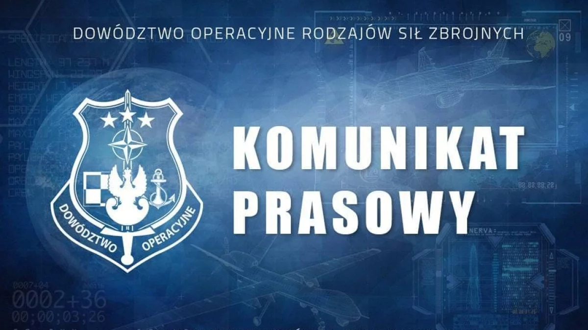 „W odniesieniu do informacji o znalezieniu szczątków obiektu na terenie powiatu łukowskiego, informujemy, że po przeprowadzeniu wstępnych analiz zapisów systemów radiolokacyjnych, minionej nocy nie zarejestrowano naruszenia polskiej przestrzeni powietrznej ani z kierunku Ukrainy, ani Białorusi. Informacja o znalezieniu obiektu, który według wstępnych ocen może stanowić element starego silnika ze śmigłem, została przekazana do Centrum Operacji Powietrznych – Dowództwa Komponentu Powietrznego. Na miejscu zdarzenia pracują odpowiednie służby, w tym żołnierze Żandarmerii Wojskowej, które prowadzą szczegółową analizę obiektu. Aktywowane zostały Lotnicze oraz Naziemne Zespoły Poszukiwawczo-Ratownicze celem sprawdzenia rejonu zdarzenia. Obsada systemu obrony powietrznej RP prowadzi całodobową obserwację polskiej przestrzeni powietrznej, pozostając w ciągłej gotowości do zapewnienia jej bezpieczeństwa.”