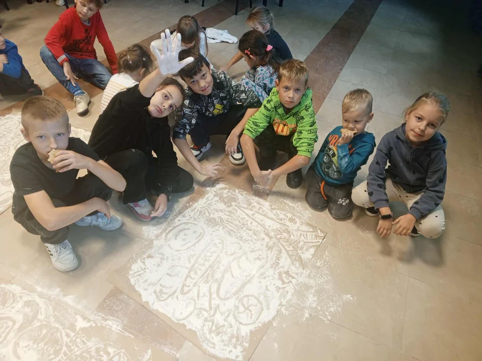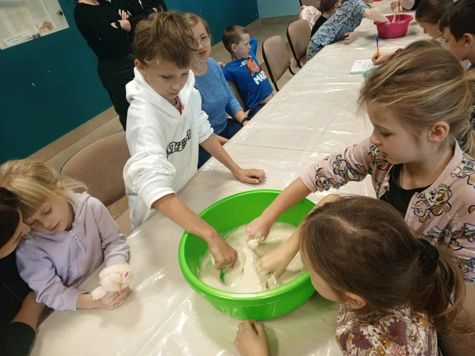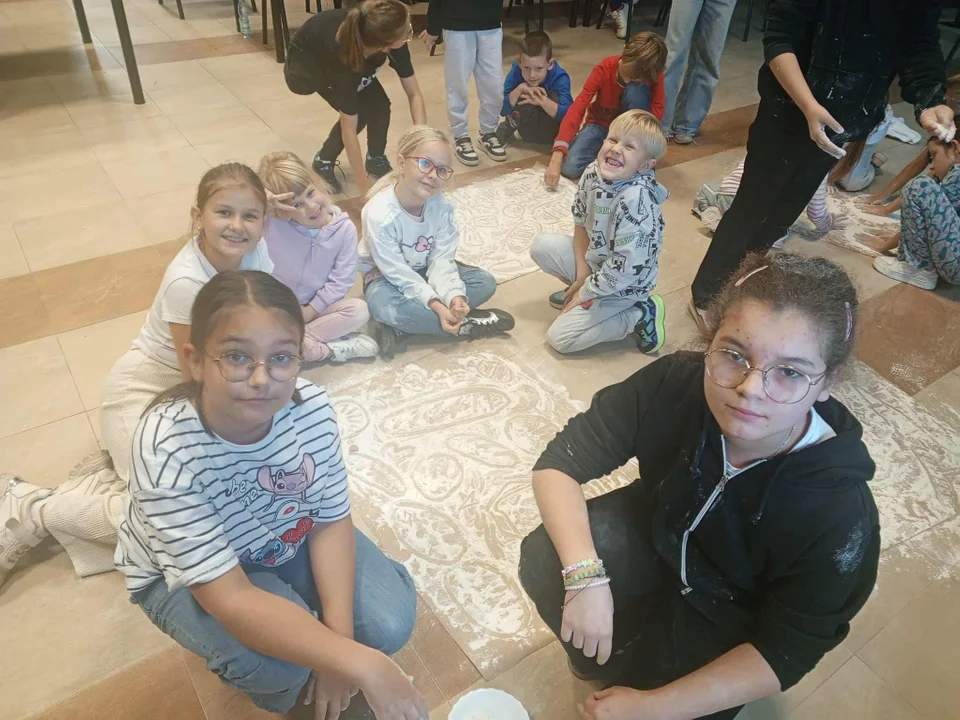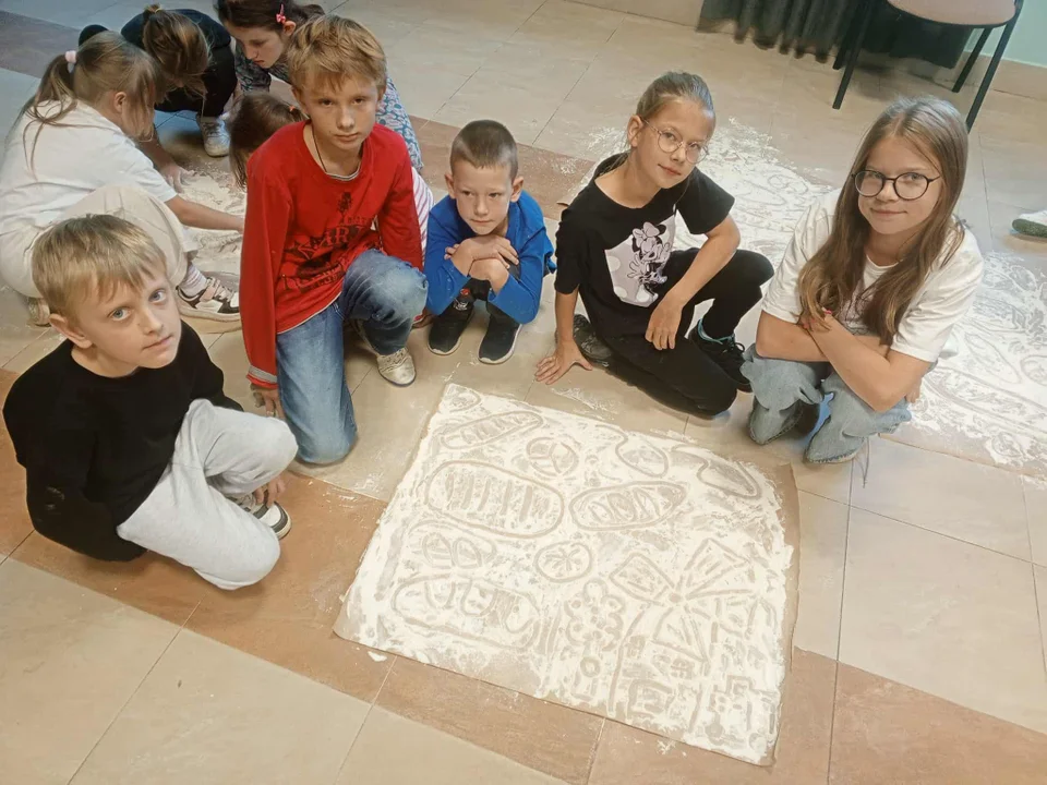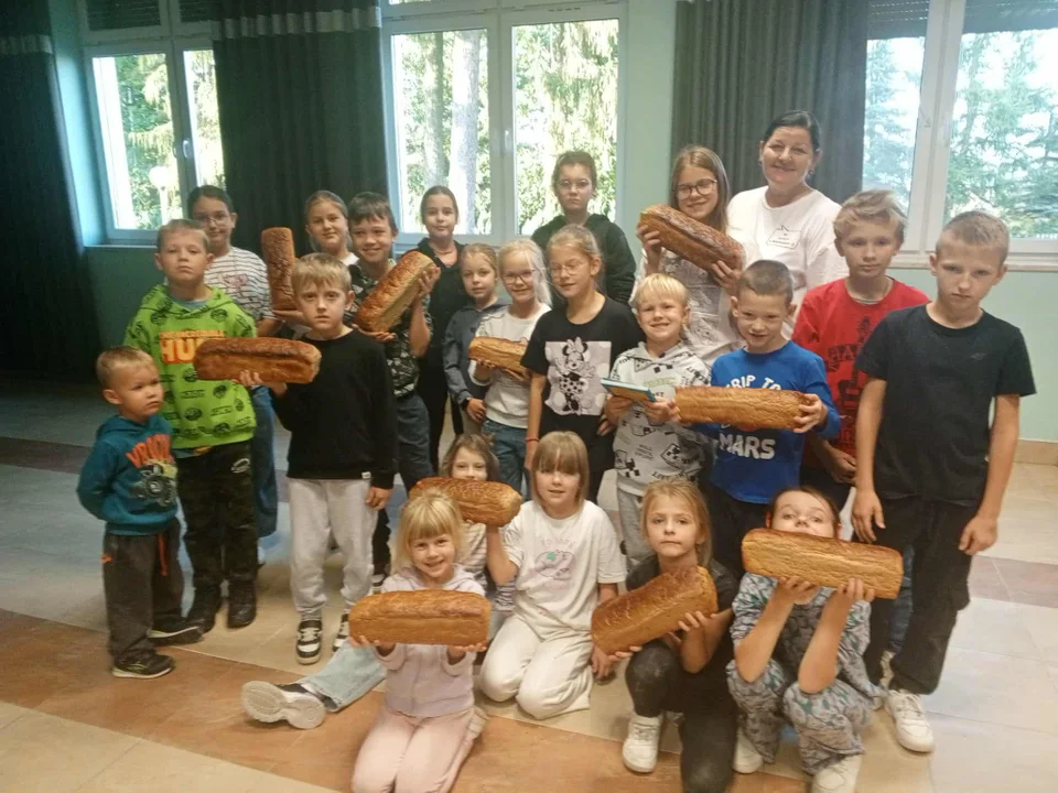 Zajęcia prowadziła pani Marianna Sadło, która krok po kroku pokazała, jak przygotować tradycyjny wiejski chleb. Uczestnicy poznali cały proces – od zrobienia zaczynu, przez wyrabianie ciasta, aż po wypiek pachnącego bochenka.
