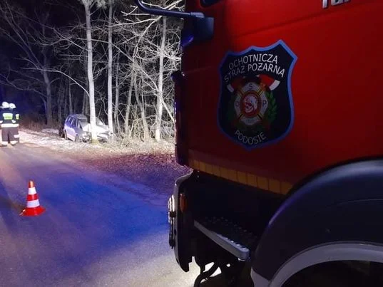 Gm. Krzywda: Wczoraj po godzinie 16 doszło do wypadku na drodze pomiedzy Hutą Dąbrową a Teodorowem. Samochód osobowy z nieznanych przyczyn zjechał z drogi i zatrzymał się na drzewie.