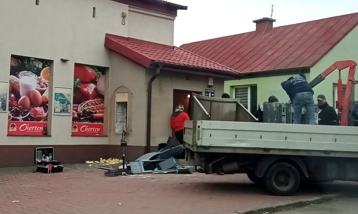 Dowiedzieliśmy się od mieszkańców, że bankomat znajdował się przy sklepie spożywczym na ul. Kościuszki w Okrzei, niedaleko szkoły i bloku nauczycielskiego.