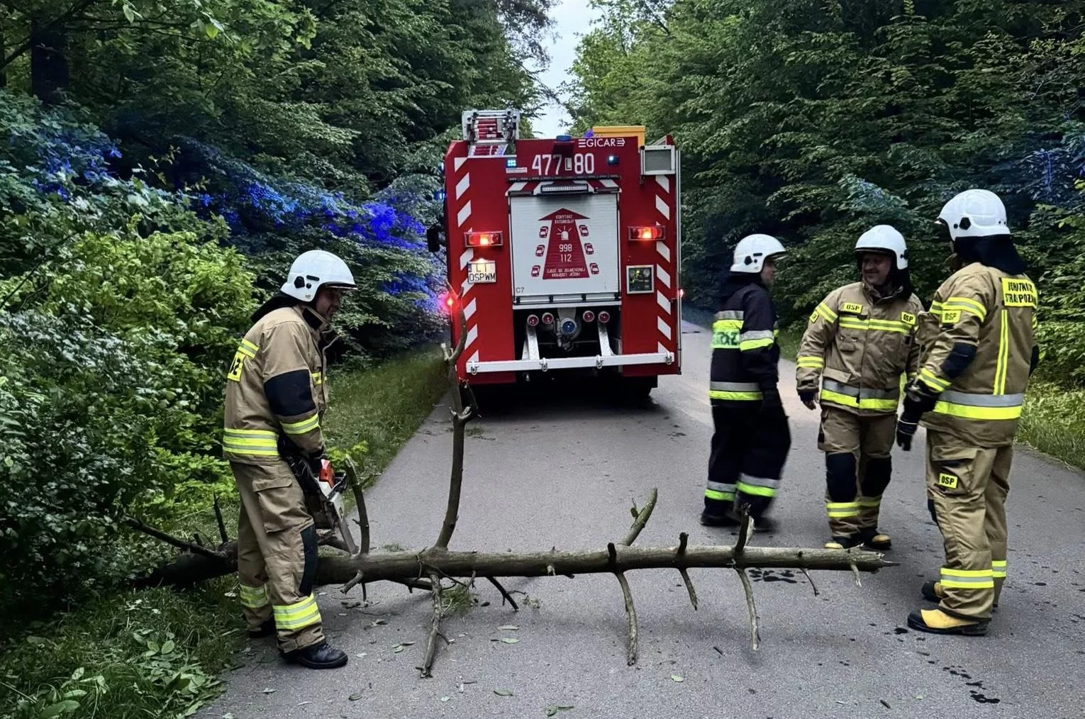 Na miejsce zdarzenia zadysponowano jednostkę OSP Wola Mysłowska. Po przybyciu na miejsce straży okazało się, że przejazd został zablokowany przez powalone drzewo. Ratownicy usunęli przeszkodę i przywrócili przejezdność drogi.
