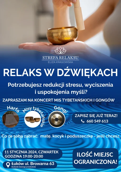 Miejsce wydarzenia: Strefa Relaksu, ul. Browarna 63, Łuków. Liczba miejsc ograniczona.