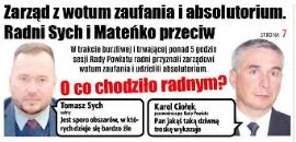Ostatecznie radni Mateńko i Sych głosowali przeciw udzieleniu wotum zaufania dla Zarządu Powiatu, a podczas głosowania nad absolutorium byli już nieobecni.