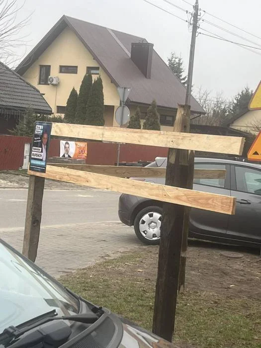 - To są po prostu deski drewniane przybite gwoździami - relacjonuje mieszkanka Łukowa. - Nie tylko całe miasto jest zaśmiecone tymi ulotkami, ale także postawili mi coś takiego pod oknem. To po prostu wygląda paskudnie - dodaje.