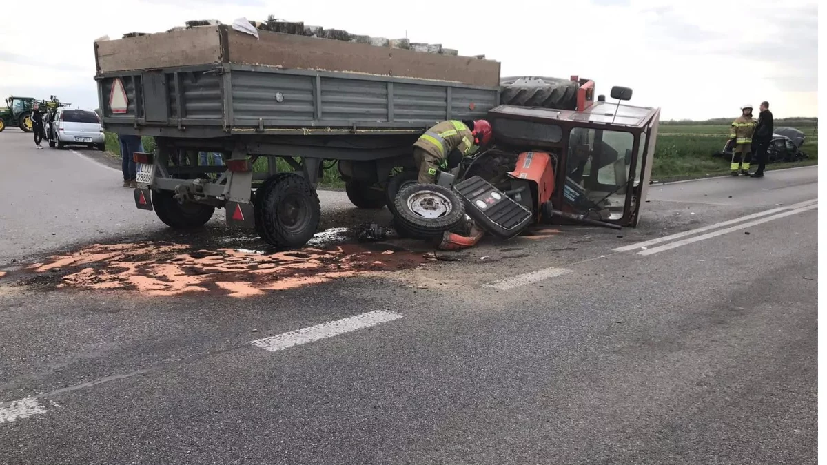 W piątek, 24 kwietnia o godz. 16.58, strażacy i policja zostali zaalarmowani o wypadku na drodze krajowej nr 63 między Łukowem a Radzyniem Podlaskim. Ze zgłoszenia wynikało, że doszło do zderzenia ciągnika rolniczego Ursus C-360 z przyczepą oraz samochodu osobowego marki Opel.