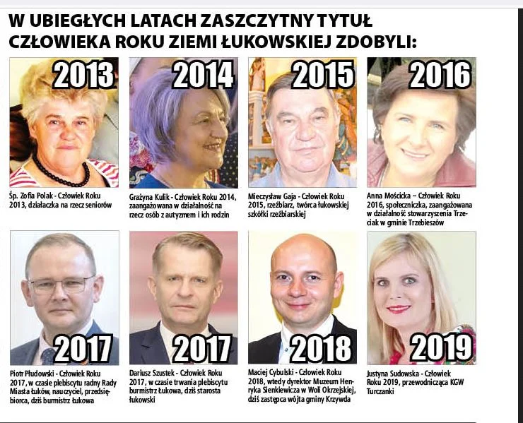 W UBIEGŁYCH LATACH ZASZCZYTNY TYTUŁ CZŁOWIEKA ROKU ZIEMI ŁUKOWSKIEJ ZDOBYLI: