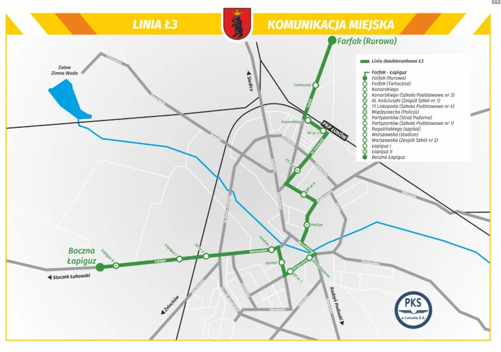 Zimowa korekta rozkładu jazdy Linii Ł3. Rozkład jazdy linii ul. Łapiguz - ul. Farfak | UM Łuków 1 / 31 / 3 | UM Łuków 2 / 32 / 3 | UM Łuków 3 / 33 / 3