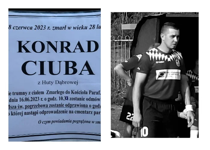 Wprowadzenie trumny z ciałem zmarłego do kościoła parafialnego w Hucie Dąbrowie nastąpi 16 czerwca o godz. 10:30. Po domówionym różańcu rozpocznie się msza święta pogrzebowa. Po niej nastąpi odprowadzenie śp. Konrada Ciuby na cmentarz parafialny.
