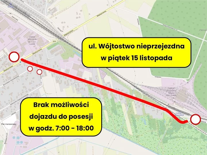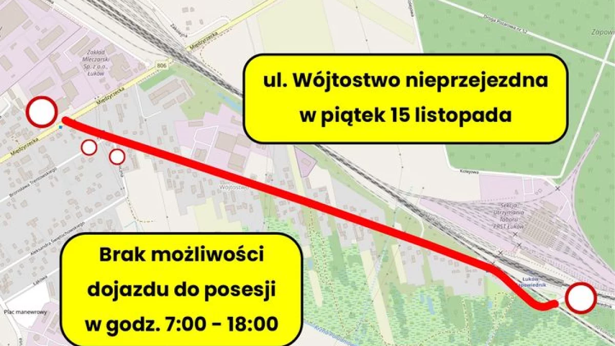 Powodem zamknięcia ulicy będzie układanie nowej nawierzchni ścieralnej. W związku z tym obowiązywały będą objazdy przez ul. Wschodnią oraz Międzyrzecką. Ponadto nie będzie możliwości dostania się do swoich posesji (również od strony ul. Trentowskiego i Granicznej/Świętochowskiego).