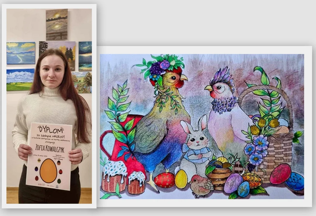 Wręczenie dyplomów i nagród odbyło się 18 marca 2024 r. w Łukowskim Ośrodku Kultury, który był organizatorem konkursu. Kartka Zosi została wybrana na tą, która rozesłana będzie z życzeniami do Przyjaciół Łukowskiego Ośrodka Kultury. Opiekunem artystycznym uczennicy była Katarzyna Świderska. Gratulujemy i życzymy kolejnych sukcesów!